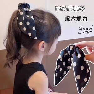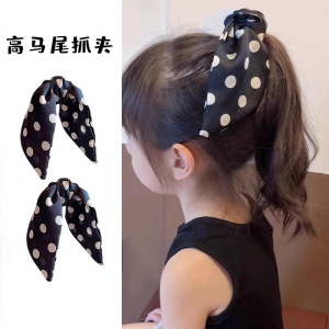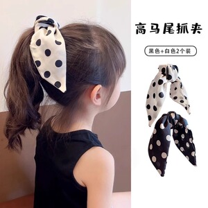 1#黑色波点蝴蝶结低马尾-飘带约12cm