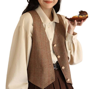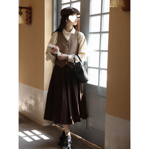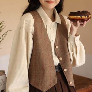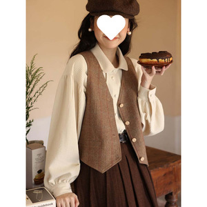 英伦学院风西装衬衫女秋秋短款格子休闲小背心马甲半身裙套装女
