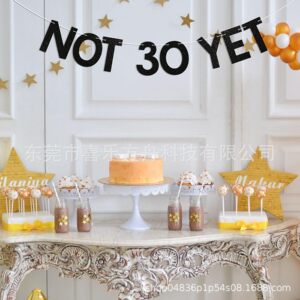 1pcs29岁生日快乐黑色字母横幅不到30岁主题派对氛围装饰用品