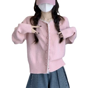 KANING蕾丝花边单排扣针织开衫女2025秋季新款温柔甜美毛衣外搭女