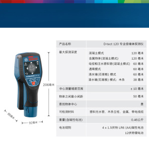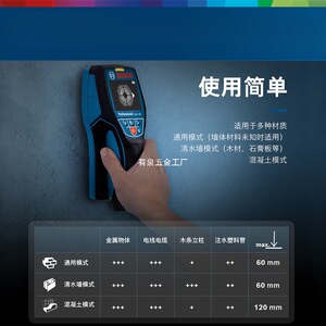 博世墙体探测仪D-tect 120探测器探测金属/电缆/木材/水管探测仪