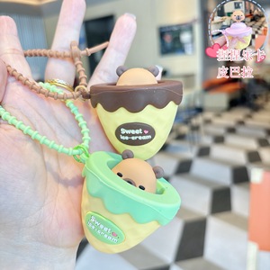创意卡通甜筒捏捏乐卡皮巴拉钥匙扣包包挂饰冰淇淋解压背包小挂件
