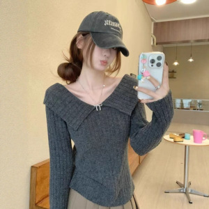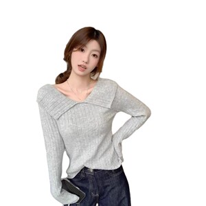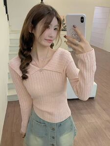 复古减龄翻领红色针织衫女秋冬新款设计感打底衫修身长袖百搭上衣