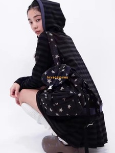cc韩国小众shalom波点星星双肩包背包水桶书包帆布棉日系女