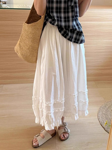 花边格子灯笼裤女夏季薄款2025新款慵懒风高腰宽松显瘦九分休闲裤