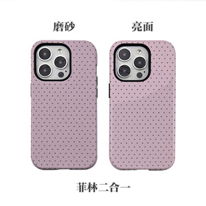 跨境粉色简约斑点菲林二合一全包精孔防摔手机壳适用苹果17手机壳