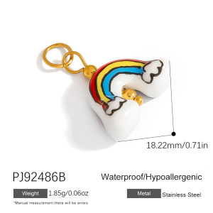 跨境不锈钢DIY配件夸张大太阳海星滴油花朵方牌彩虹项链吊坠