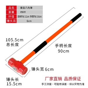 (約 2.5kg 個) 八角ハンマー 8ポンド ハンドル付き レッドモデル