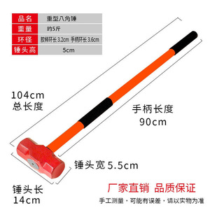 (約 3.5kg 個) 八角ハンマー 12ポンド ハンドル付き レッドモデル