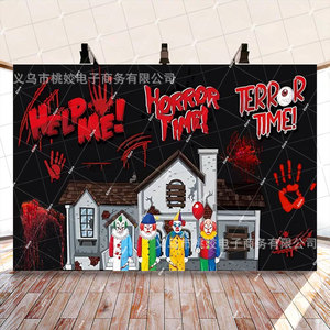 跨境接JIT亚马逊万圣节小丑马戏团背景布乙烯基布派对装饰背景横