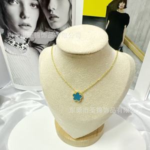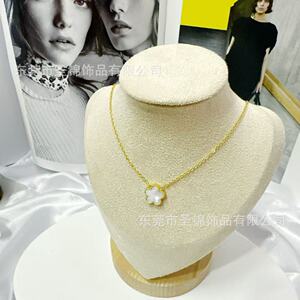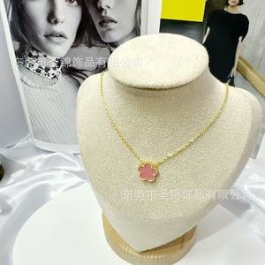 热卖双面五叶草贝壳单花项链18K 镀金高级感项链女钛钢项饰品批发
