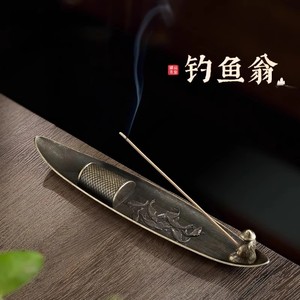 合金线香家用室内禅意熏香沉檀香卧摆件创意香插香座渔翁垂钓香炉