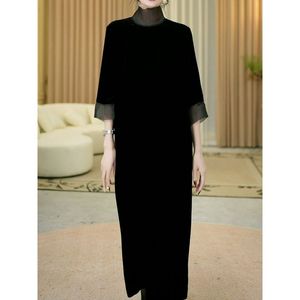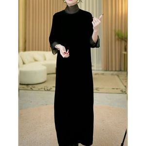 轻奢名媛风丝绒高领七分袖小黑裙秋季新款时尚洋气遮肉A字裙7816