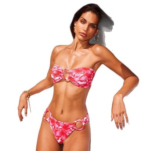 ヨーロッパとアメリカの真っ赤な大きな花輪中空ビキニチューブトップスプリットデザインホリデースタイルセクシーなビーチ水着女性用