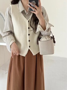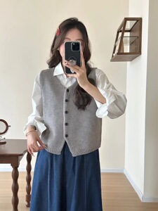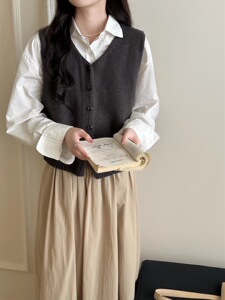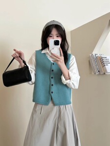 早秋新款宽松百搭叠穿V领针织马甲背心女无袖毛衣坎肩马夹上衣潮