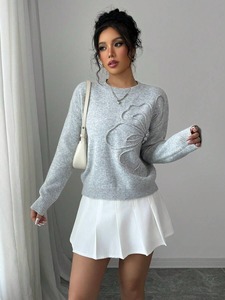 外贸欧美2025秋冬新款设计感时尚百搭休闲花朵圆领针织衫女士毛衣