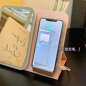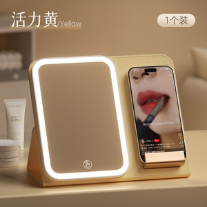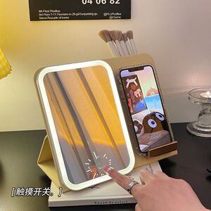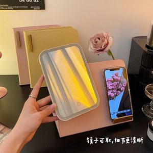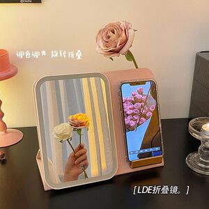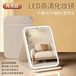 ins镜子带灯化妆镜高颜值可折叠充电led补光镜学生宿舍桌面梳妆镜