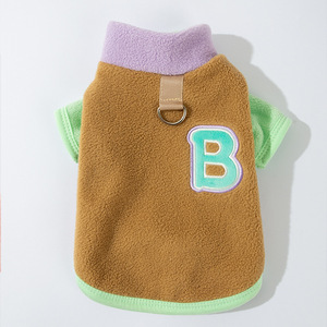 日本と韓国のシンプルな犬服、コントラストカラーのポーラーフリース二本足牽引フリース服、テディビション秋冬ペット服
