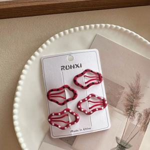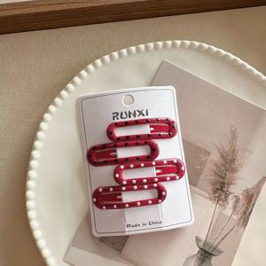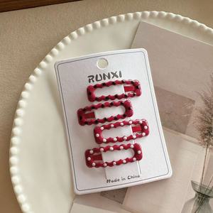 国庆节新款酒红色波点发夹星星爱心滴油高品质女孩儿童可爱发饰