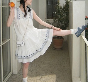 “马蒂斯的海岸”法式复古航海系重工花朵白色刺绣套装裙