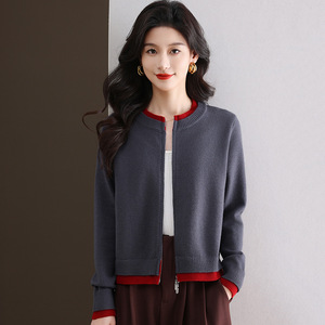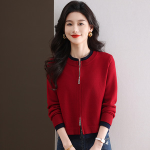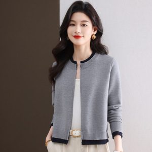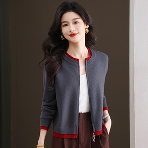 2025年新款秋装短款拼色双拉链针织衫开衫外搭女时尚气质毛衣外套