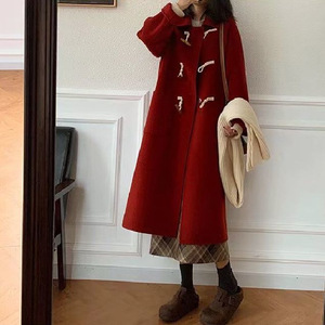 黑色牛角扣秋冬大衣女小个子2025秋冬新款赫本风新款呢子外套女装