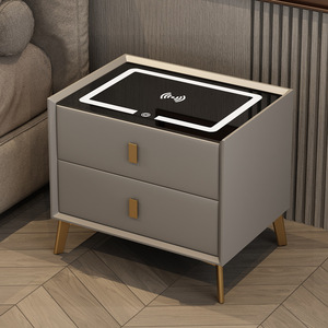 外贸实木智能床头柜轻奢高级感多功能无线充简易轻奢卧室床边柜