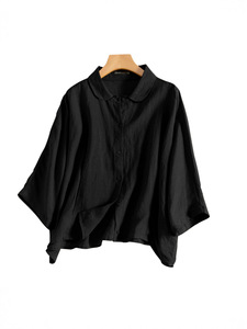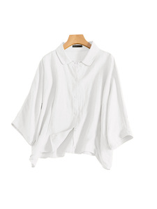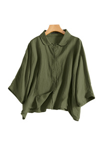 跨境外贸2025亚马逊速卖通中东春秋新款亚麻落肩袖上衣文艺衬衫女