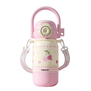 高颜值大容量手提杯可爱一盖双饮保温杯便携随行儿童吸管杯批发