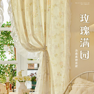 法式碎花窗帘遮光免打孔安装出租房改造卧室感飘窗2025新款