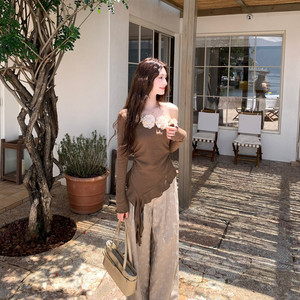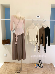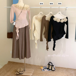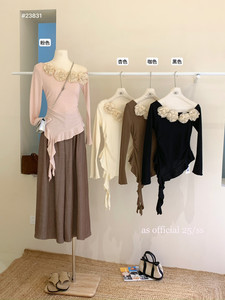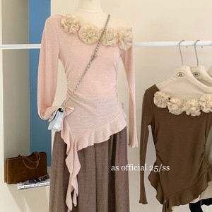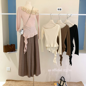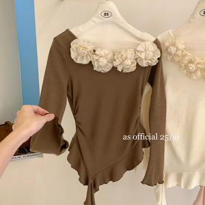AS OFFICIAL博主推荐早秋新款氛围感花朵飘带显瘦小衫气质上衣女