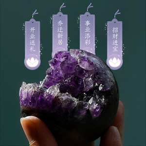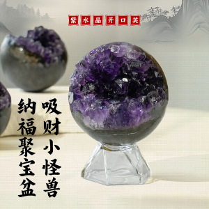 天然紫水晶开口笑摆件聚宝盆紫晶簇原石消磁石客厅紫晶洞装饰品