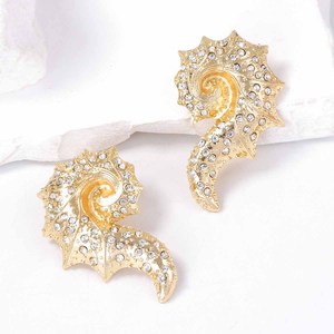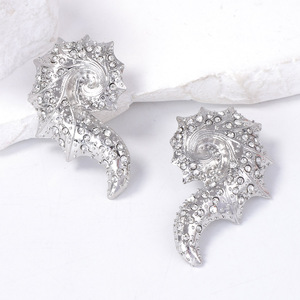 ZAクロスボーダーオーシャンコールドスタイルライトラグジュアリーハイエンドデザイン誇張合金象嵌ジルコンユニークな法螺貝レディースイヤリング