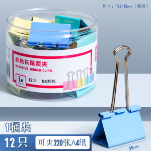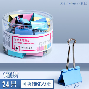 得力8553ES彩色长尾票夹筒装(混)(24只/筒)