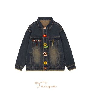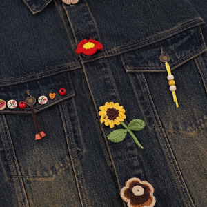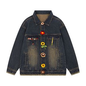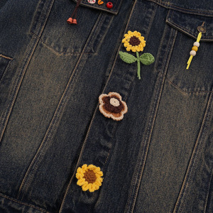 Mint Miaow 25秋季新品美式花朵刺绣洗水牛仔夹克外套