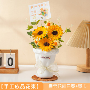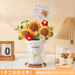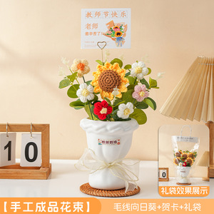 教師の日のギフト、子供たちが先生に贈るギフト、ひまわり模造の永遠の花、手編み完成品の花束、鉢植え