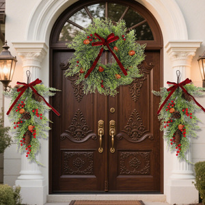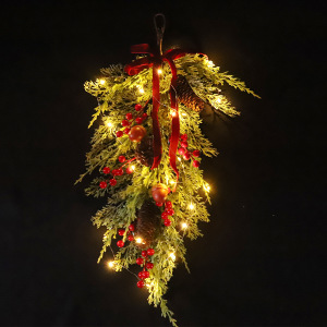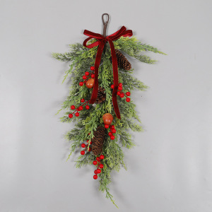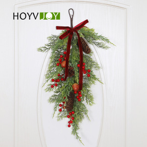 圣诞倒挂树装饰红果圣诞节墙面户外商场户外圣诞树藤条酒店门挂
