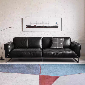 中古包豪斯黑曜真皮沙发客厅直排不锈钢意式黑色头层牛皮简约沙发
