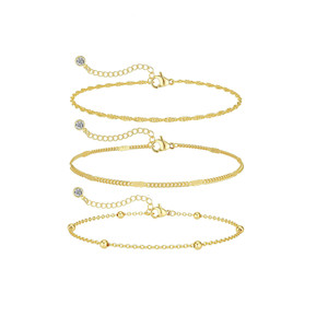 跨境热销 新款时尚百搭圆珠扁蛇链三件套组合 简约多层脚链套装女