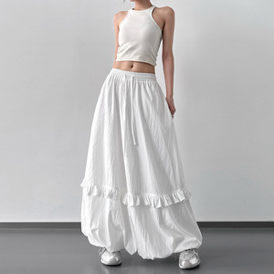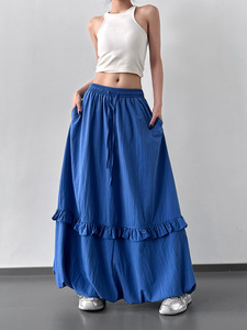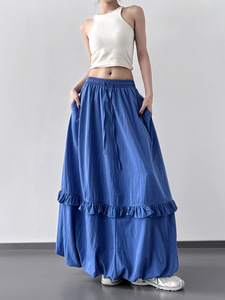 2025夏季新款韩系时尚百搭显瘦木耳边设计感花苞裙宽松休闲蓬蓬裙