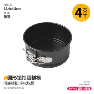 4英寸圆形心形活底锁扣蛋糕模具慕斯碳钢烤盘不沾蜂窝底烘焙磨具