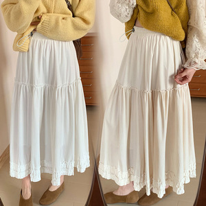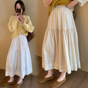 孕妇小众设计感拼接花边长款半身裙女2025新款春秋季坠感百搭长裙