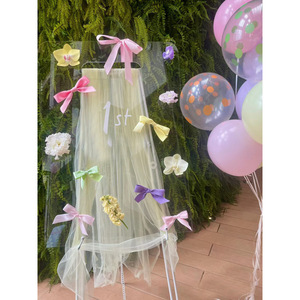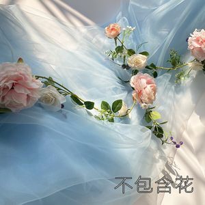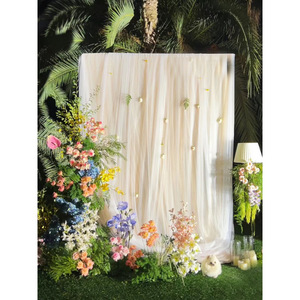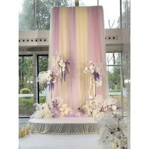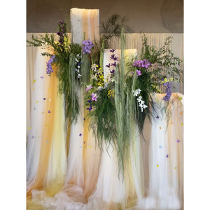 米白香槟淡黄色软纱幔婚礼迎宾背景瀑布纱装饰活动舞台布置网纱
