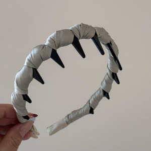サテン巻き長歯フープ - グレー