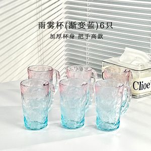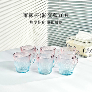 带把渐变蓝高6只+银鹿杯架【破损包赔】