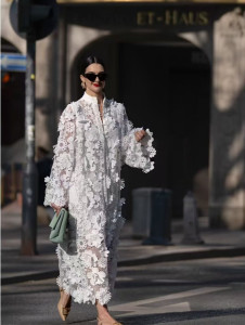 ルーズレースドレスオーストラリアンレディ2025秋スタンドカラー立体花刺繍社交気質白ロングドレス