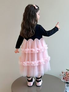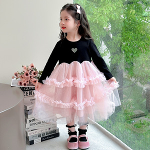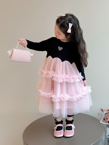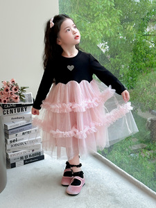 女童2025年秋款新款爱心网纱公主连衣裙一件代发童装网红礼服裙潮