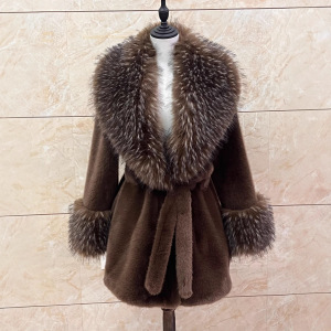 2025新款冬季皮草外套金貂绒跨境出口仿貂皮大毛领仿貉子毛厂家直