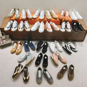 H家2025夏季新款情侣款复古拼色德训鞋真皮平底运动休闲系带阿甘