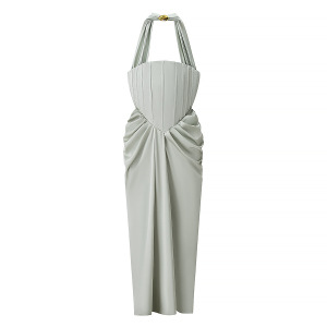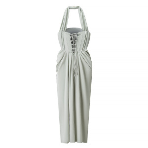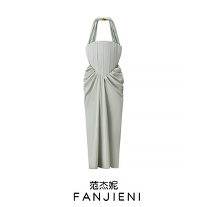 高ZR外贸批发 欧美风女装 级感法式时尚气质百搭简约挂脖抹胸长裙
